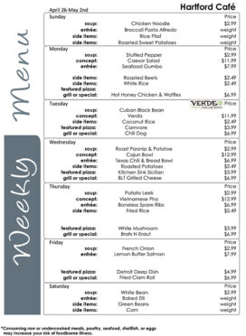 Hartford Hospital cafeteria menu: 4/26-5/2