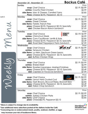 Backus Café menu: 11/16-11/22